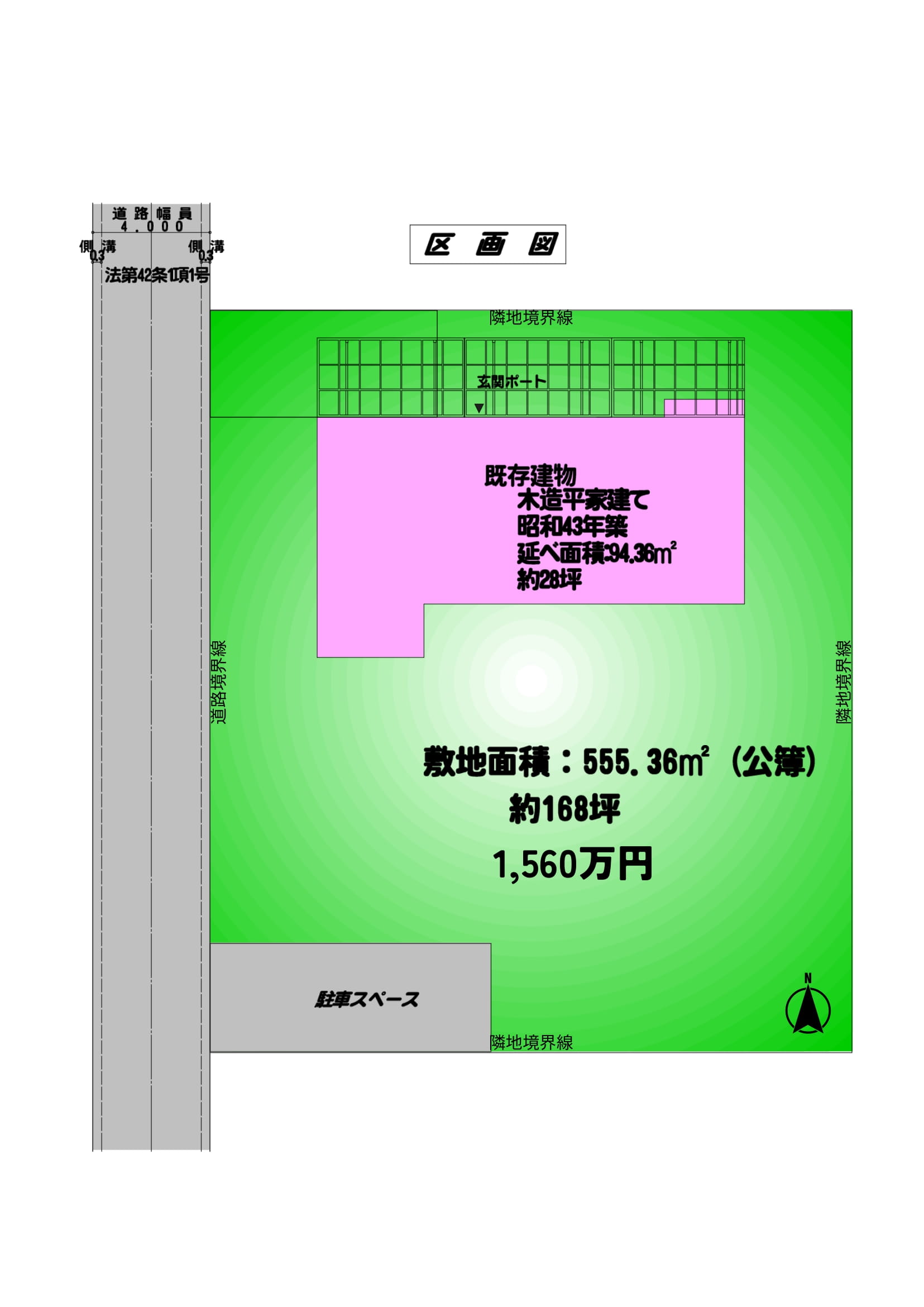 | 地目 | 宅地 | 接道状況 | 西 4m 茂原市道 法第42条1項1号 |